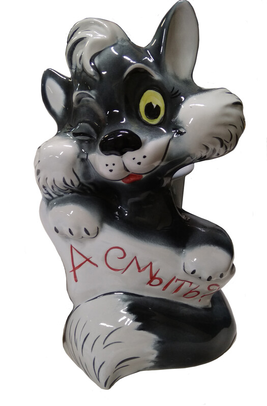 Фарфор. Подставка под ёрш (+ ершик) "Кот-хулиган" ЛЮКС