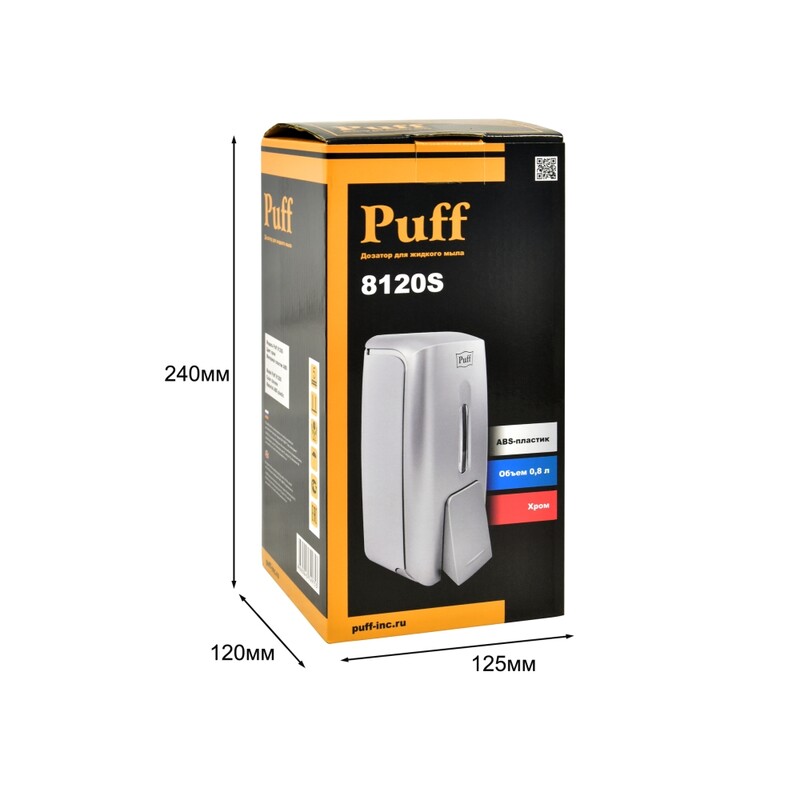 Дозатор для жидкого мыла настенный Puff8120S 0,8л, пластик., ХРОМ НОВИНКА!!!