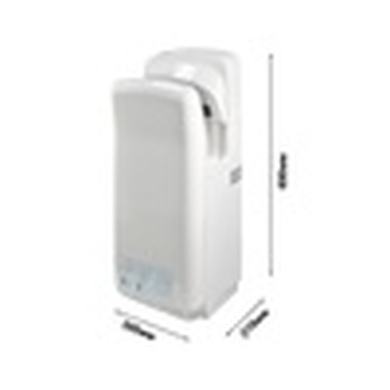 Электрический прибор, нагревающий воздух. Осушение рук осуществляется за счет двух узконаправленных быстрых потоков воздуха.