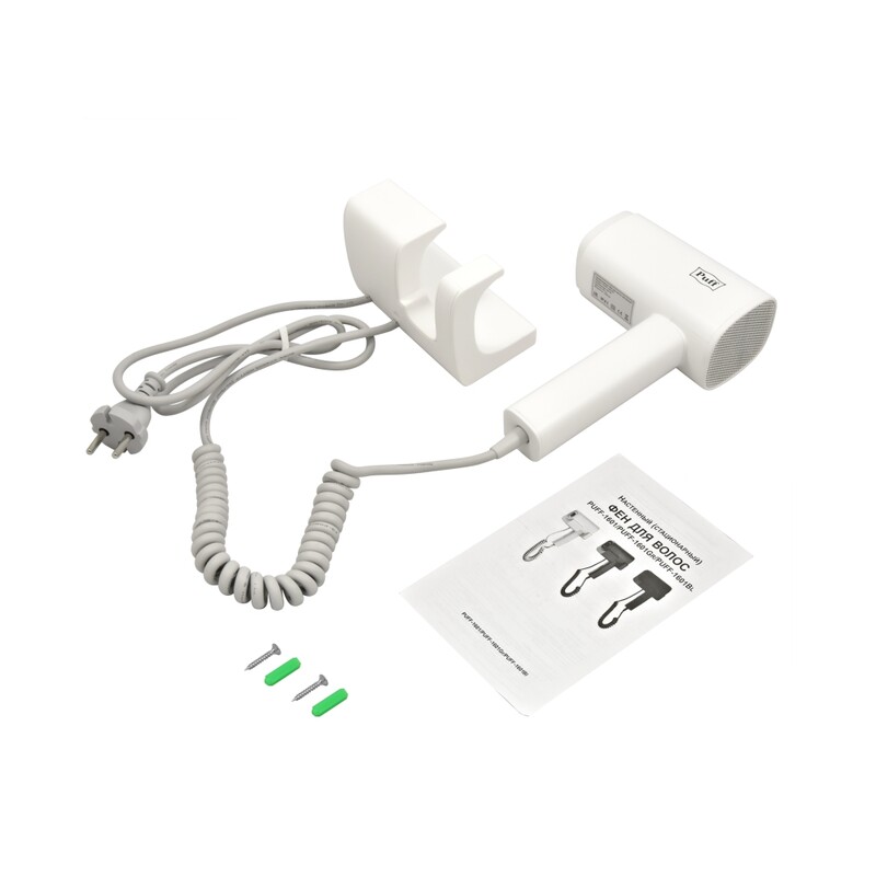 Фен для волос настенный "Puff-1601", белый матовый. Две скорости.