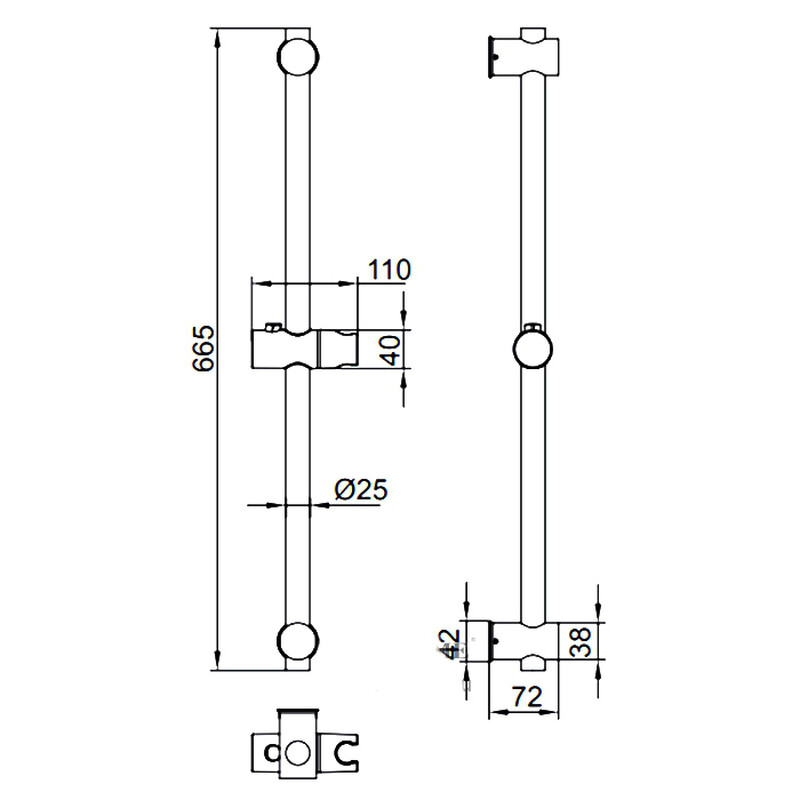 Cтойка для душа L78001B-3 применяется для крепления душевой лейки в ванной комнате, монтируется на стену. Представляет собой металлическую стойку из нержавеющей стали SUS304 диаметром 25 мм с перемещающимся вертикально, по всей длине стойки, креплением для душевой лейки, длина стойки 665 мм. Стойка окрашена в черный цвет, имеет матовую поверхность, что позволяет использовать ее в ультрасовременном дизайнерском интерьере