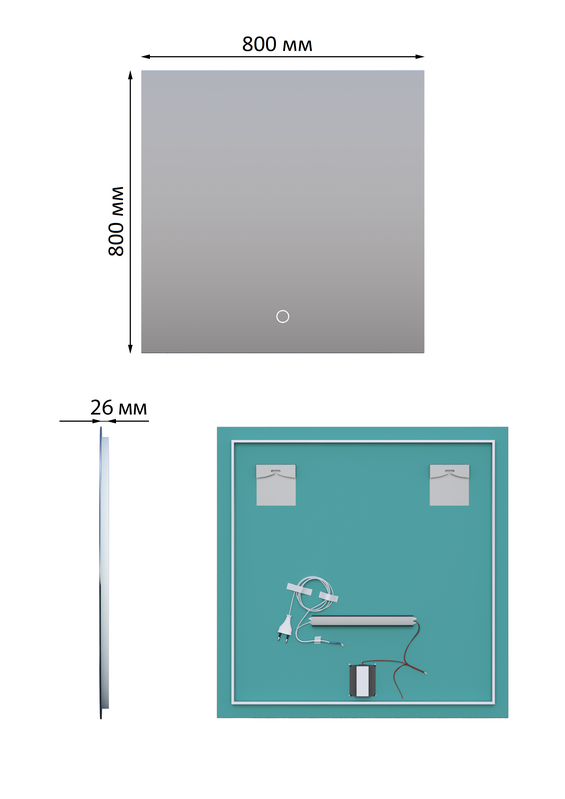 Зеркало SANTREK HOME с фронтальной LED подсветкой квадратное "КРОНАС" 800х800мм