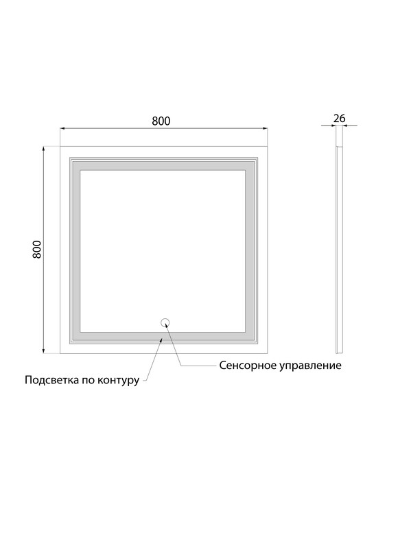 Зеркало SANTREK HOME с LED подсветкой "АНТА премиум" 800х800мм (антизап-е,часы,t)