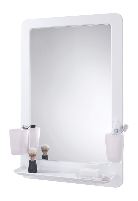 Зеркальный набор ORIO белый (зеркало 530х794 в пластиковой раме с полкой + 2 стакана + мыльница)