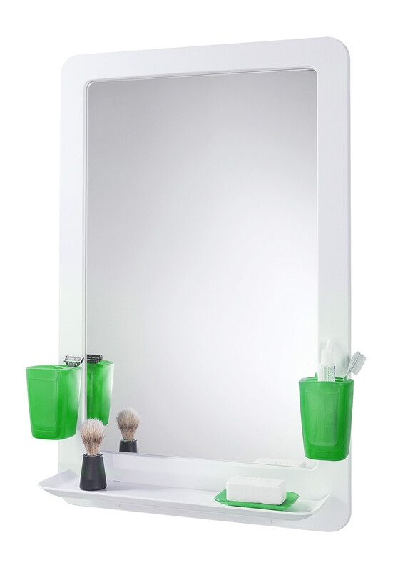 Зеркальный набор ORIO салатовый (зеркало 530х794 в пластиковой раме с полкой + 2 стакана + мыльница)