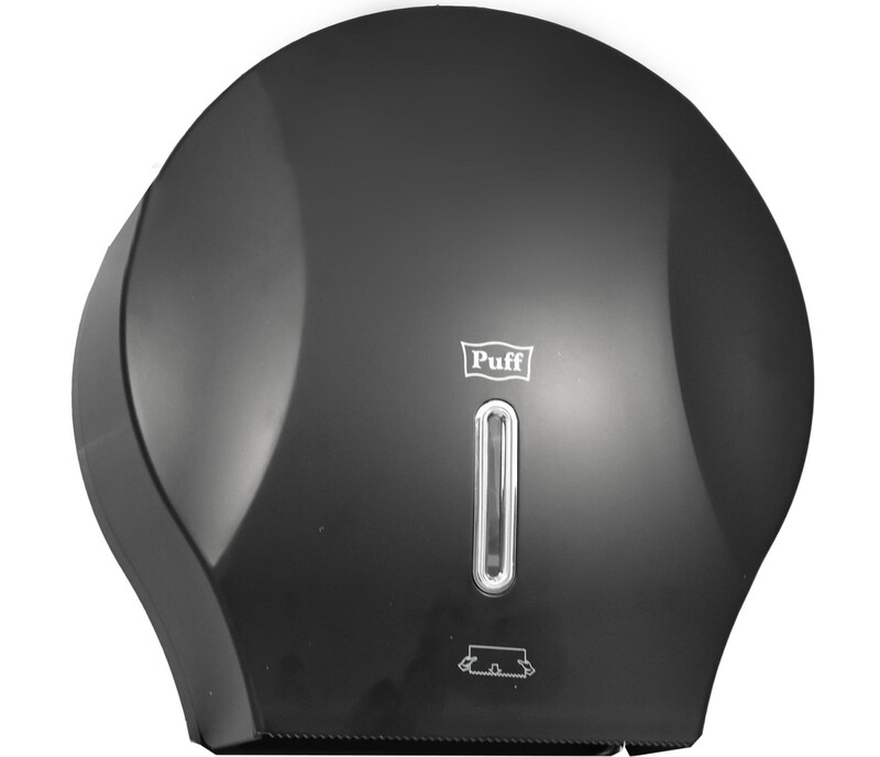 Диспенсер для туалетной бумаги Puff-7120Bl с замком, пластик, ЧЕРНЫЙ, диам. втулки 43мм