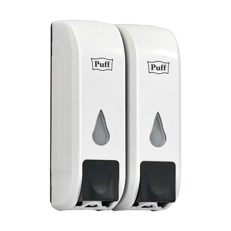Дозатор для жидкого мыла настенный Puff-8108 двойн. 2х0,35л пласт. бел., съемн. контейнеры, с ключом