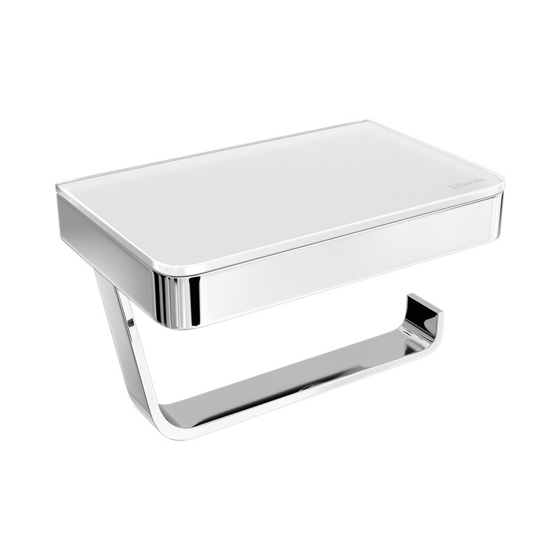 9721028 Держатель для туалетной бумаги GLASS LINE с полкой, хром/белое стекло LEMARK