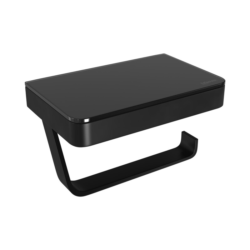 9722030 Держатель для туалетной бумаги GLASS LINE с полкой, ЧЁРНЫЙ/черное стекло LEMARK