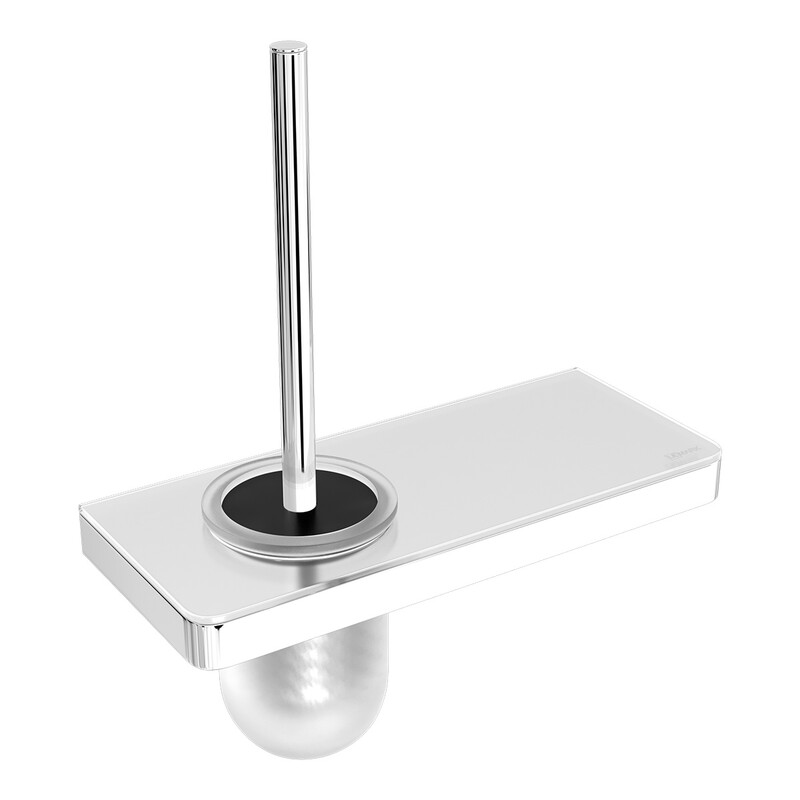 9761031 Ершик для унитаза GLASS LINE с держателем и полкой, хром/белое стекло LEMARK