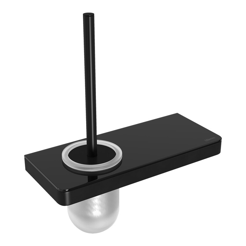 9762033 Ершик для унитаза GLASS LINE с держателем и полкой, ЧЁРНЫЙ/черное стекло LEMARK