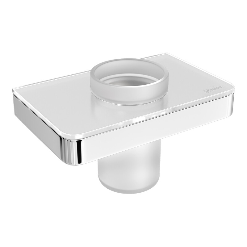 9731034 Стакан для зубных щеток GLASS LINE с держателем, хром/белое стекло LEMARK