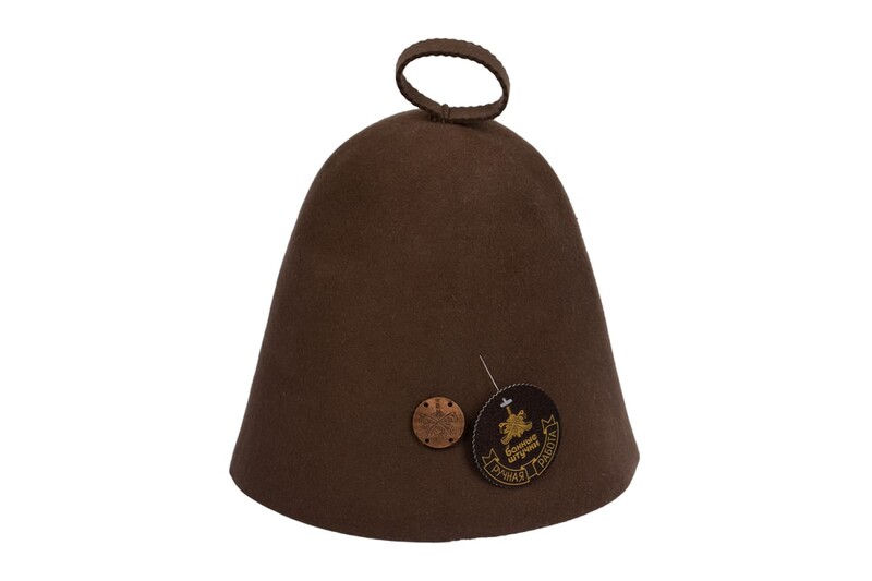 Бесшовная коричневая шапка с вышитым логотипом Банные Штучки войлок 100% 41415 имеет стильный внешний вид.