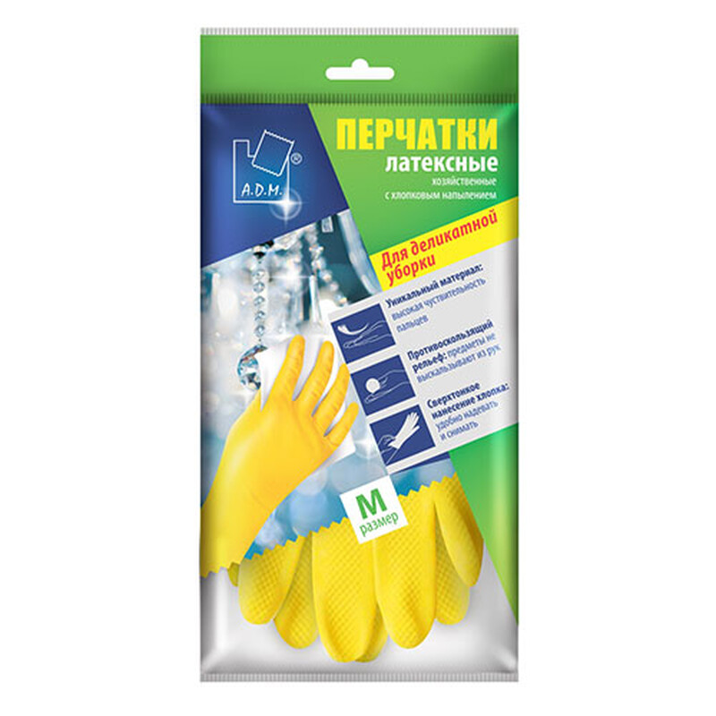 БЕЗ БРЕНДА. Перчатки резиновые (латексные) "Деликатная Уборка" желтые р-р" М"