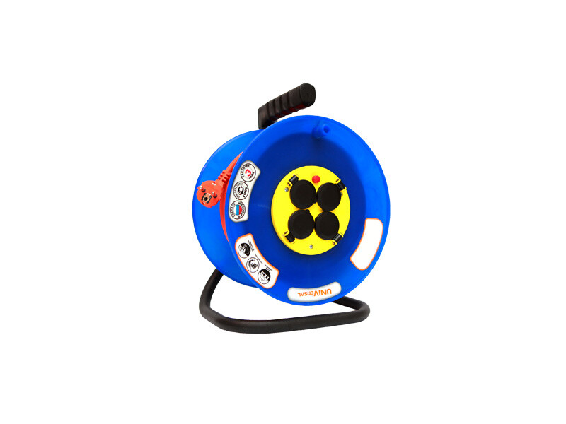 БЕЗ БРЕНДА. Эл-удлинитель 50м (1,3кВт) 4роз на катушке 250 мм. с ручкой