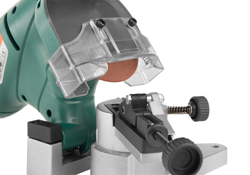 Sturm BG60016 – специализированный точильный станок бытового назначения для затачивания цепей электрических и бензиновых пил. Инструмент компактен по габаритам, прост в использовании и позволяет в домашних условиях восстановить остроту пильных зубьев и повысить ресурс любой цепи, независимо от ее шага и количества звеньев. Модель оснащается 160 ваттным двигателем, позволяющим развивать на валу шпинделя высокую частоту вращения в 3000 об / мин, что положительно сказывается на эффективности процесса заточки. В качестве точильного камня используется абразивный или алмазный круг диаметром 100 мм. Станок обладает продуманной конструкцией – литое алюминиевое основание способствует точной фиксации цепи, зажимное приспособление оснащено поворотным механизмом с фиксированными положениями, за счет чего количество перестановок обрабатываемой цепи минимально, предусмотрен ограничитель глубины заточки, позволяющий достичь единого размера режущих зубьев цепи для равномерного распределения нагрузки по всей ее длине при рас