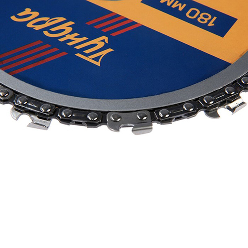 Диск пильный от марки «ТУНДРА» предназначен для совместного использования с угловой шлифовальной машиной.Пильный диск применяется для реза таких материалов как ДСП, МДФ и фанера.Изделие оснащено по окружности пильной металлической цепью, которая обеспечивает плавность и точность реза.Диск адаптирован к быстрому вращению, благодаря чему увеличивается скорость работы.