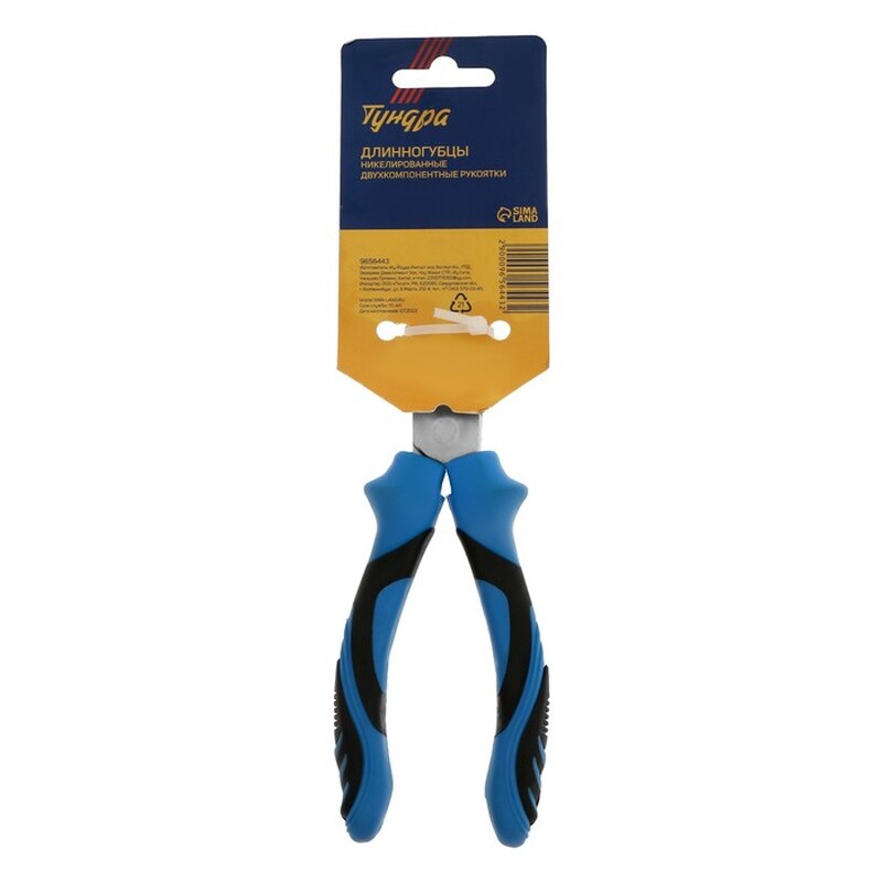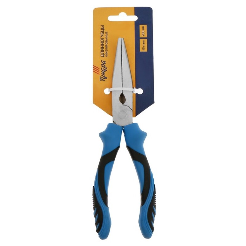 Длинногубцы ТУНДРА, сталь 45, никелированные, 2К рукоятки, 200 мм 9656443