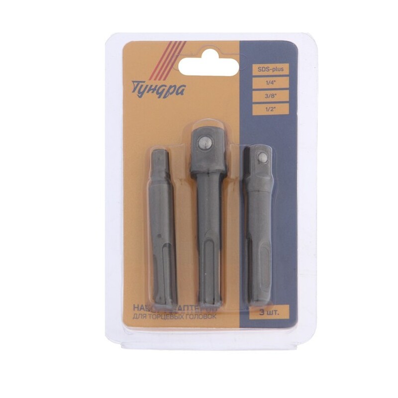 Набор адаптеров для торцевых головок ТУНДРА, SDS-plus, 1/2 x 75, 3/8 и 1/4" х 65 мм, 3 шт. 7443394