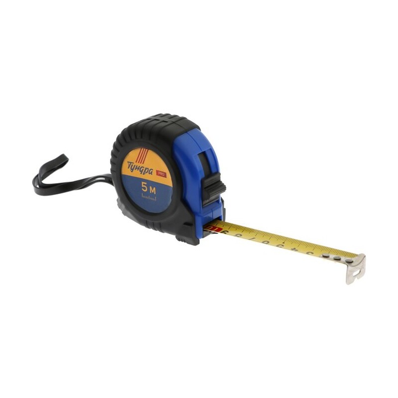 Линейка инструментов ТУНДРА PRO является продуктом нашей собственной разработки.Мы учли все современные требования к качеству и проработали индивидуальную упаковку. Нам важно, чтобы она была в едином стиле и максимально удобна для розничной продажи.Ассортимент товара был подобран на основе длительного анализа потребностей наших покупателей.Рулетка от марки «ТУНДРА PRO» предназначена для измерения длины предметов или объектов.Измерительная лента выполнена из металла с чёткой прорисовкой единиц измерения на 5 метров, шириной 19 мм и толщиной 1.1 мм. На измерительную ленту нанесено защитное покрытие.Специальный фиксатор позволит зафиксировать ленту на необходимой отметке.Корпус двухкомпонентный, выполнен из качественного противоударного ABS пластика.