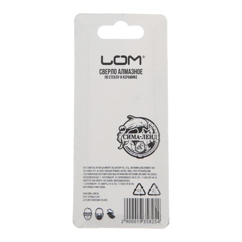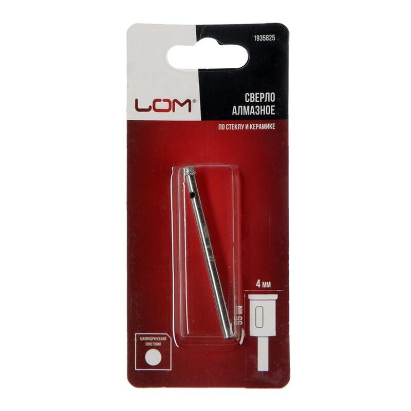 Сверло алмазное по стеклу и керамике с цилиндрическим хвостовиком марки LOM предназначено для совместного использования с дрелью.Сверло применяется для сверления отверстий в таких материалах, как: стекло, керамогранит и керамическая плитка.Инструмент имеет головку с алмазным напылением, благодаря которому выходят точные и аккуратные отверстия.