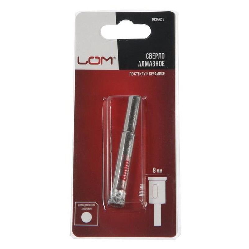 Сверло алмазное по стеклу и керамике с цилиндрическим хвостовиком марки LOM предназначено для совместного использования с дрелью.Сверло применяется для сверления отверстий в таких материалах, как: стекло, керамогранит и керамическая плитка.Инструмент имеет головку с алмазным напылением, благодаря которому выходят точные и аккуратные отверстия.