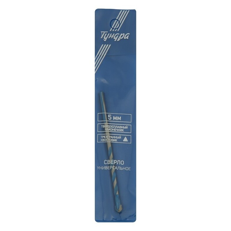 Сверло универсальное ТУНДРА, твердосплавный наконечник, трехгранный хвостовик, 5 х 100 мм 5354683