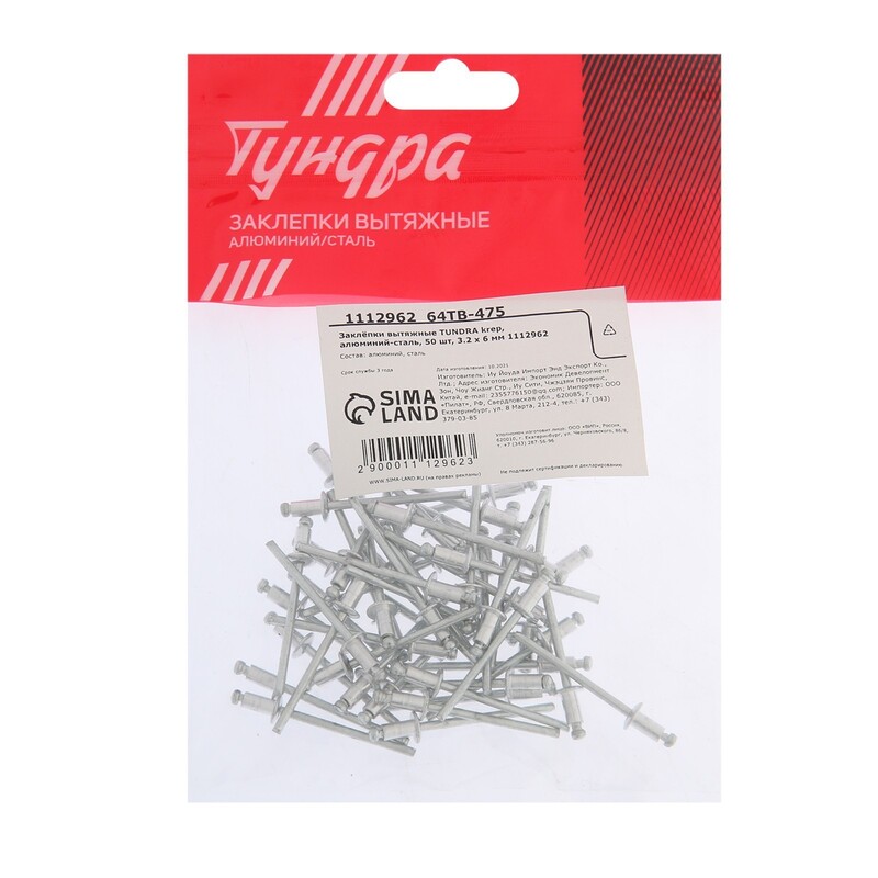Заклёпки вытяжные ТУНДРА krep, алюминий-сталь, 50 шт, 3.2 х 6 мм 1112962