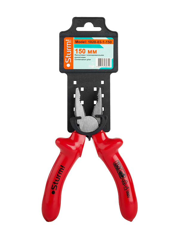1020-03-1-150 Пассатижи 150мм С ДИЭЛЕКТРИЧЕСКИМИ РУКОЯТКАМИ. 1000В Sturm!