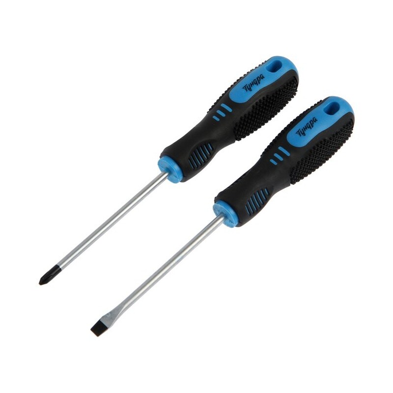 Набор отверток ТУНДРА, CrV, хром, магнит, 2К рукоятки, PH1 и SL5 х 100 мм, 2 шт. 7635814