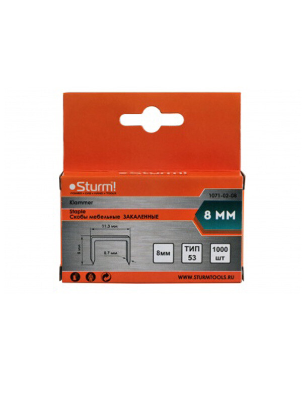 1071-02-08 Скобы для степлера 8мм (тип 53) 1000ШТ. В УПАК.,ОЦИНКОВАННЫЕ, ЗАКАЛЕННЫЕ Sturm!