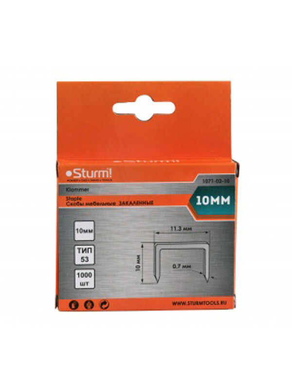 1071-02-10 Скобы для степлера 10мм (тип 53) 1000ШТ. В УПАК.,ОЦИНКОВАННЫЕ, ЗАКАЛЕННЫЕ Sturm!