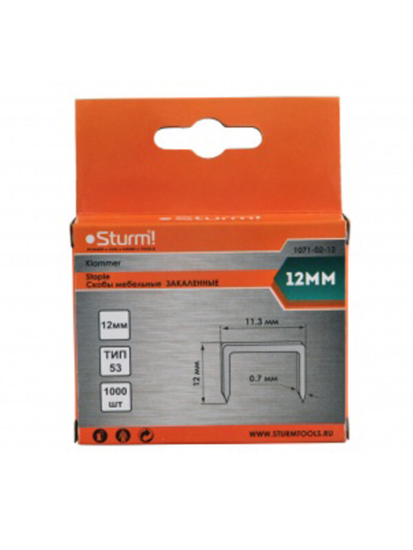 1071-02-12 Скобы для степлера 12мм (тип 53) 1000ШТ. В УПАК.,ОЦИНКОВАННЫЕ, ЗАКАЛЕННЫЕ Sturm!