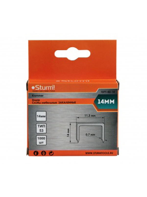 1071-02-14 Скобы для степлера 14мм (тип 53) 1000ШТ. В УПАК.,ОЦИНКОВАННЫЕ, ЗАКАЛЕННЫЕ Sturm!