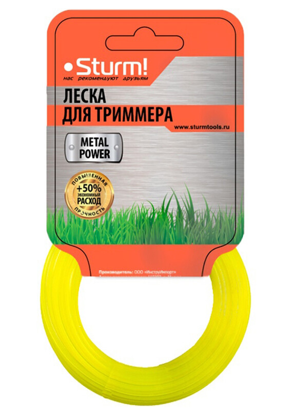 Sturm!. GT3535-2.0-7-15 Леска для триммера, d=2.0 мм, l=15м, СЕМИГРАННИК, металлизир., картон, Sturm