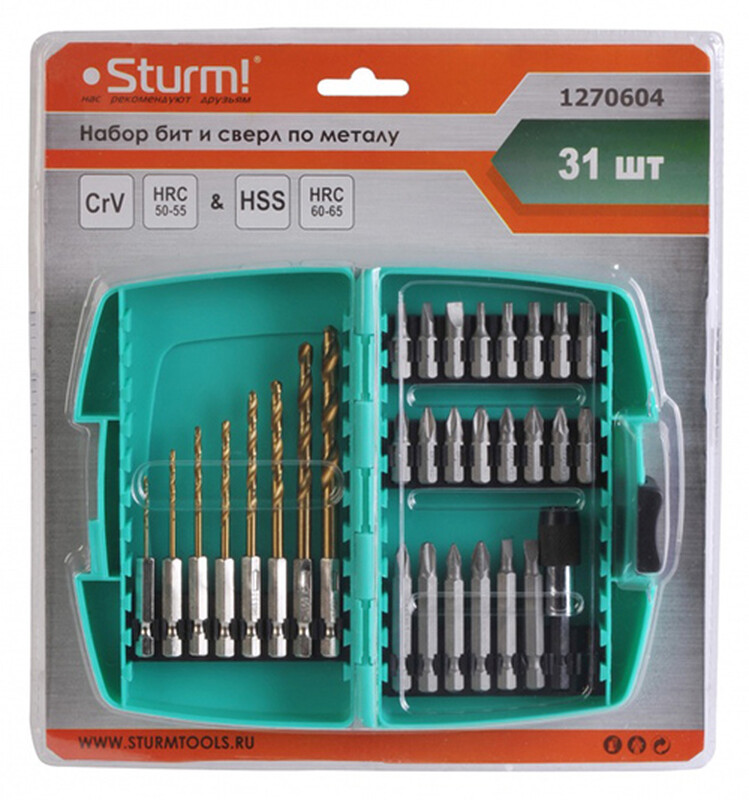 Sturm!. 1270604 набор бит и сверл 31 шт, 6-и гранный хвостовик, в кейсе, STURM