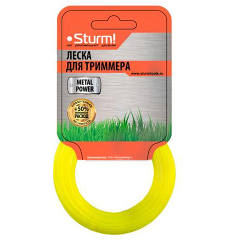 GT3535-2.4-S-15 Леска для триммера, d=2.4 мм, l=15м, КРУЧЕНЫЙ КВАДРАТ,металл., картон, Sturm!