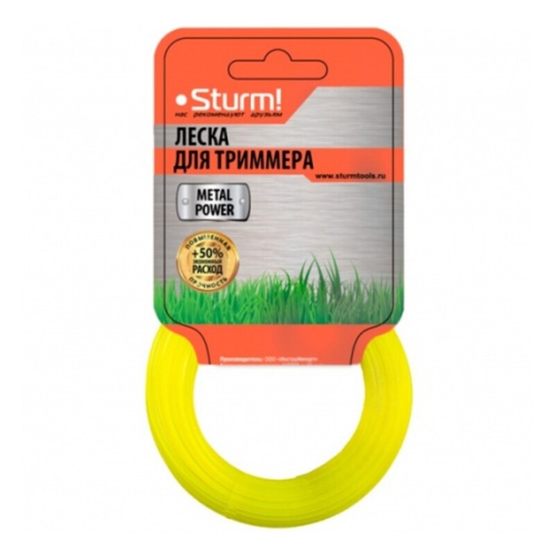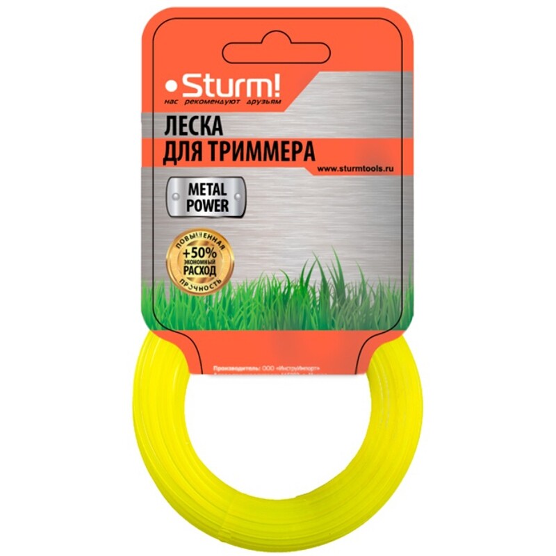 GT3535-2.0-S-15 Леска для триммера, d=2.0мм, l=15м, КРУЧЕНЫЙ КВАДРАТ, металл., картон, Sturm!