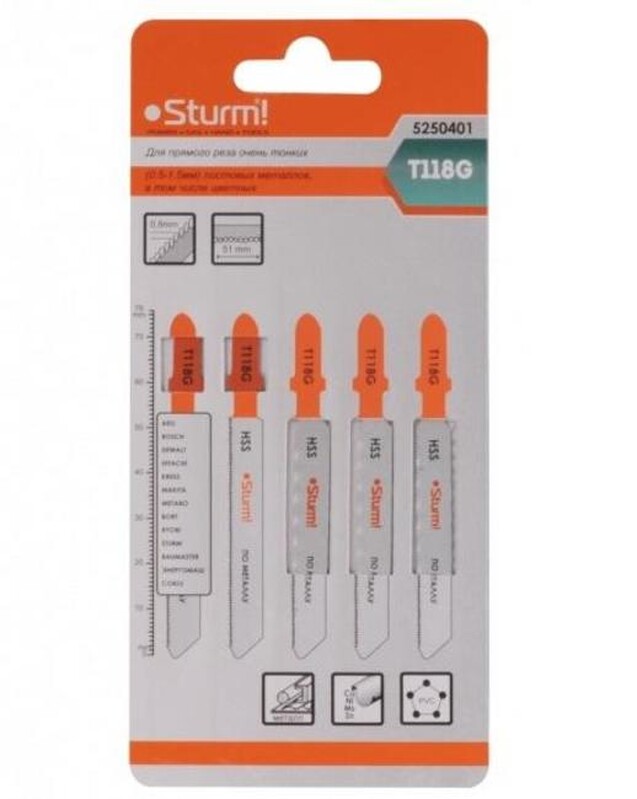 5250401 Пилки для лобзика Sturm! по металлу T118G 5шт, для тонких цветных металлов