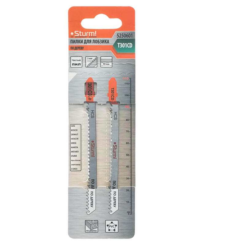5250601 Пилки для лобзика Sturm! T301CD 2шт, прям.чист.рез,10-68мм,мяг.древ.,ДСП,ДВП,стол.плиты