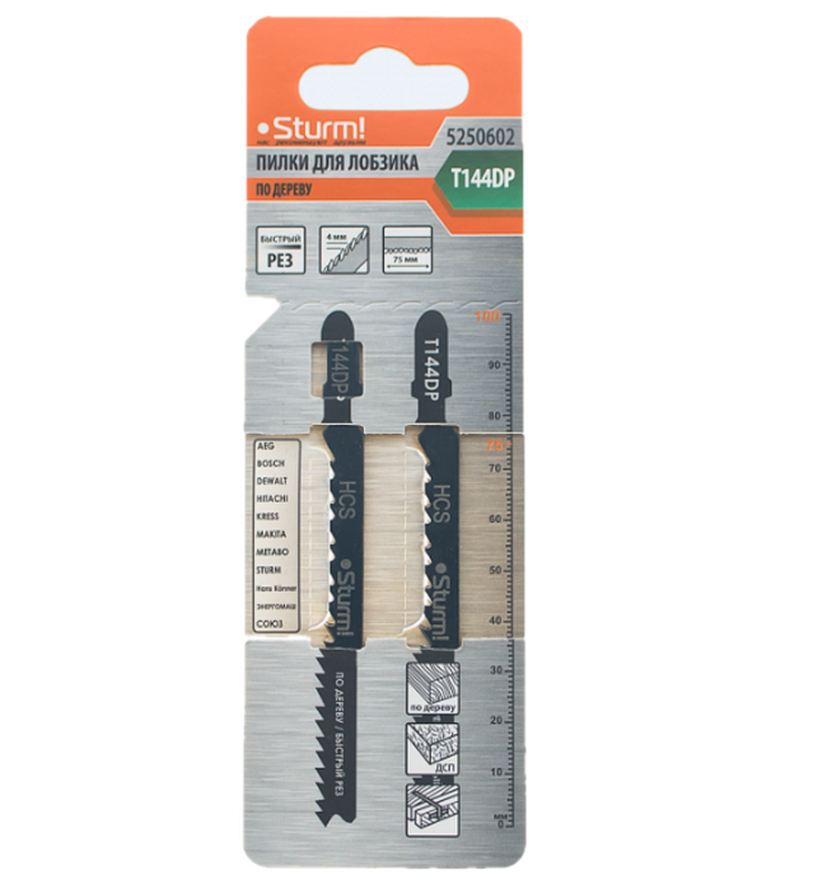 5250602 Пилки для лобзика Sturm! T144DP 2шт, точн.параллельный.рез,5-50мм,мяг.древ.,ДСП,ДВП