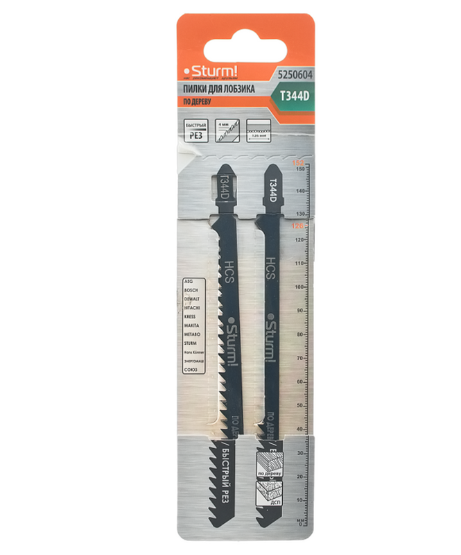 5250604 Пилки для лобзика Sturm! T344D 2шт быстрый рез,5-100мм, мяг.древ, ДСП, ДВП,стол.плиты