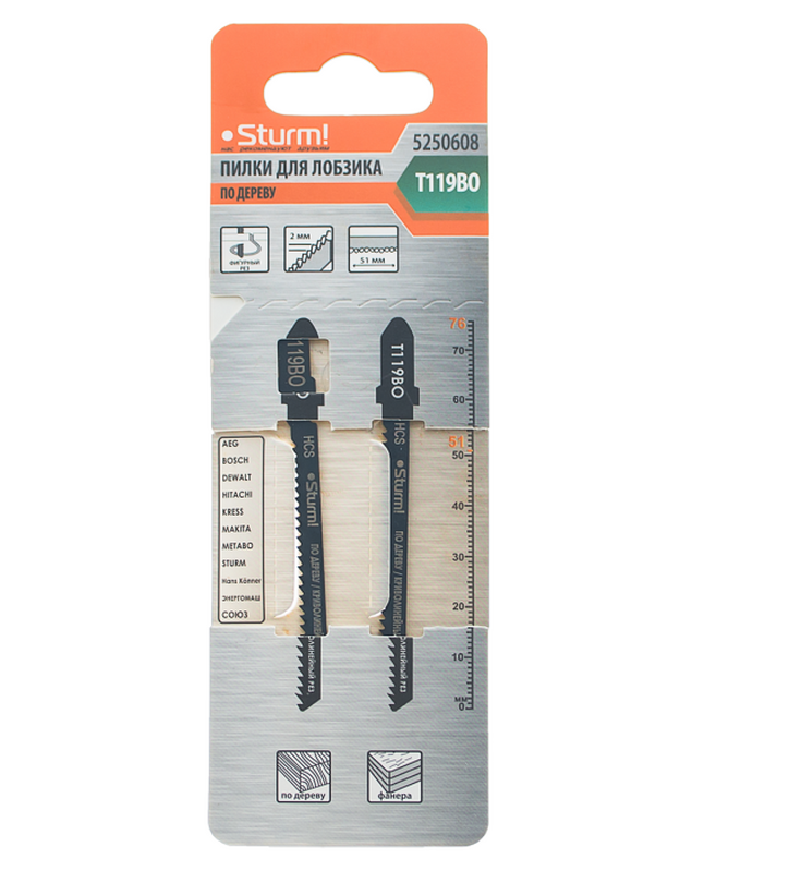 5250608 Пилки для лобзика Sturm! T119BO 2шт криволинейн. чистый рез, 2-15 мм, фанера, пластик