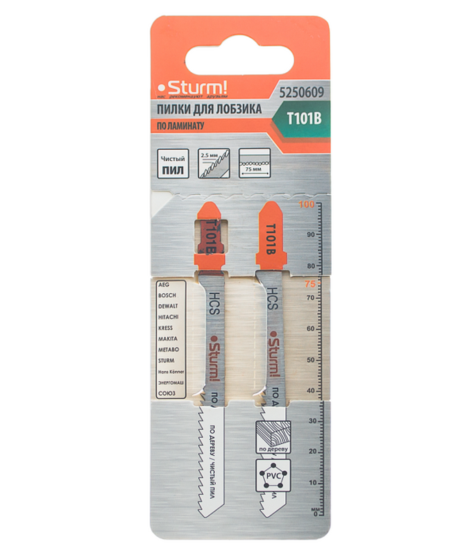 5250609 Пилки для лобзика Sturm! T101B 2шт прям.чист.рез,3-30мм,мяг.древ,ДСП,ДВП,пластик