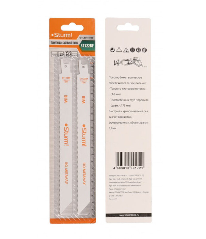 9019-03-S1122BF Полотно для сабельной пилы МЕТАЛЛ 2шт 225/1,8мм (толс лист/труб/проф) Sturm!