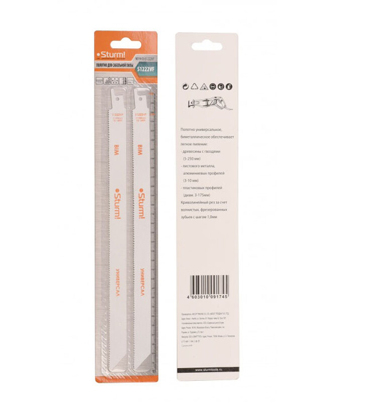 9019-03-S1222VF Полотно для сабельной пилы универс. 2шт 300/1,8-2,5мм (дер,мет,пласт), Sturm!