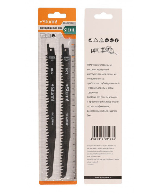 9019-03-S1531L Полотно для сабельной пилы по дереву 2шт 240/5мм (грубая древесина), Sturm!