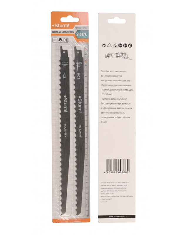 9019-03-S1617K Полотно для сабельной пилы ДЕРЕВО 2шт 300/8,5мм (грубая древ без гвоздей) Sturm!