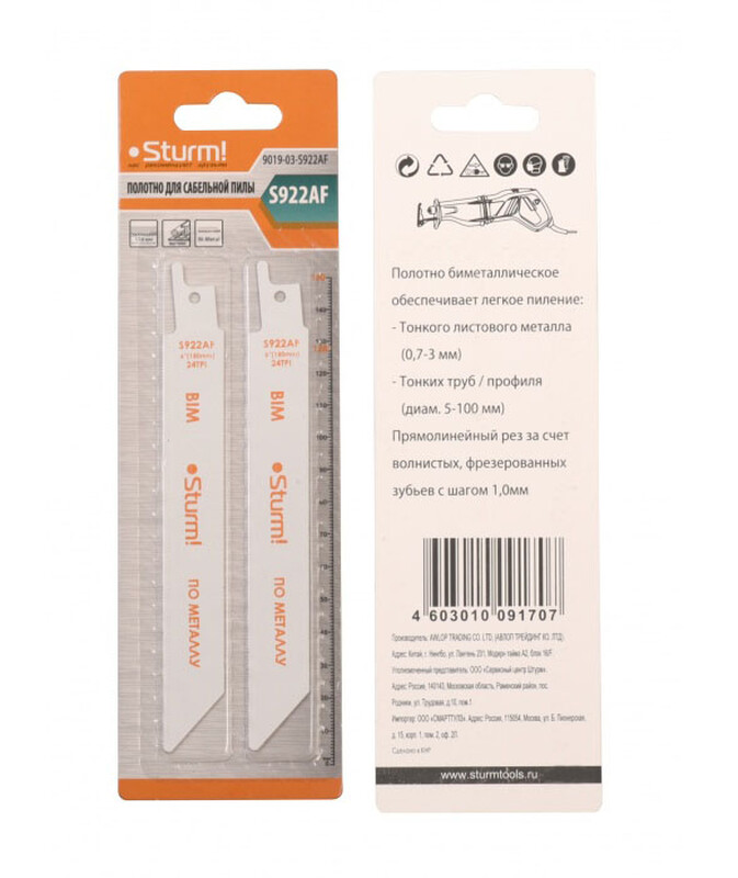 9019-03-S922AF Полотно для сабельной пилы МЕТАЛЛ 2шт 150/1мм (тонк лист/труб/проф) Sturm!