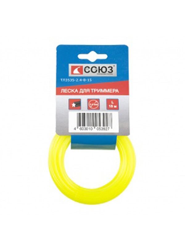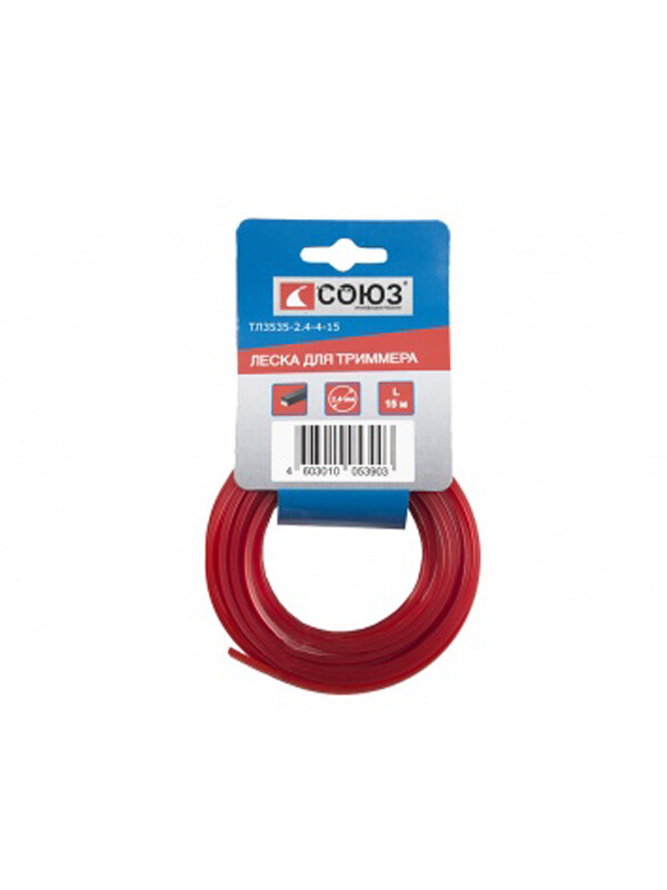 Союз. ТЛ3535-2.4-4-15 Леска для триммера, ф 2,4 мм, 15 м, КВАДРАТ